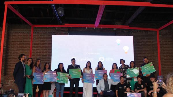 Viernes, 5 de enero de 2024.- El Festival Aprender fue el escenario para la premiación de la cuarta edición de Elige Innovar: Premio a la Innovación Educativa. Allí, representantes de los 10 equipos ganadores de diversas regiones del país presentaron sus proyectos, con temáticas tan variadas como el bienestar socioemocional, la combinación entre física, química y el arte; la sustentabilidad utilizando el Chat GPT, y el cine desde la visión de párvulos.