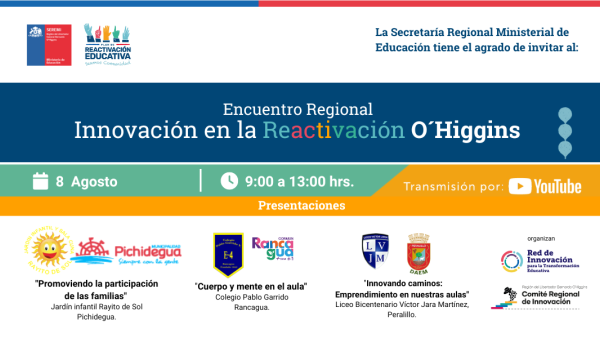 El martes 8 será una jornada presencial en el auditorio del liceo Neandro Schilling de San Fernando, donde se presentarán nueve experiencias de innovación educativa en el marco de la reactivación, impulsadas por establecimientos que han puesto en práctica diversas formas para enseñar y así promover el aprendizaje integral de las y los estudiantes.