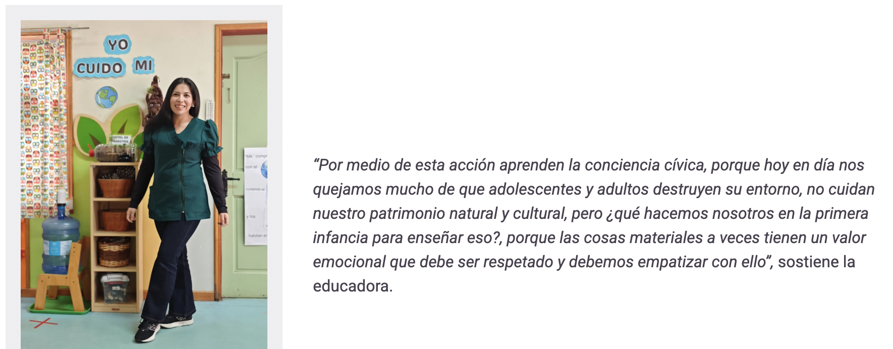 La educadora fue seleccionada entre nueve finalistas por su trabajo centrado en el bienestar socioemocional de niñas y niños y por promover una temprana conexión con la naturaleza, siendo la primera educadora que recibe este galardón en nuestro país.